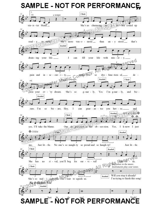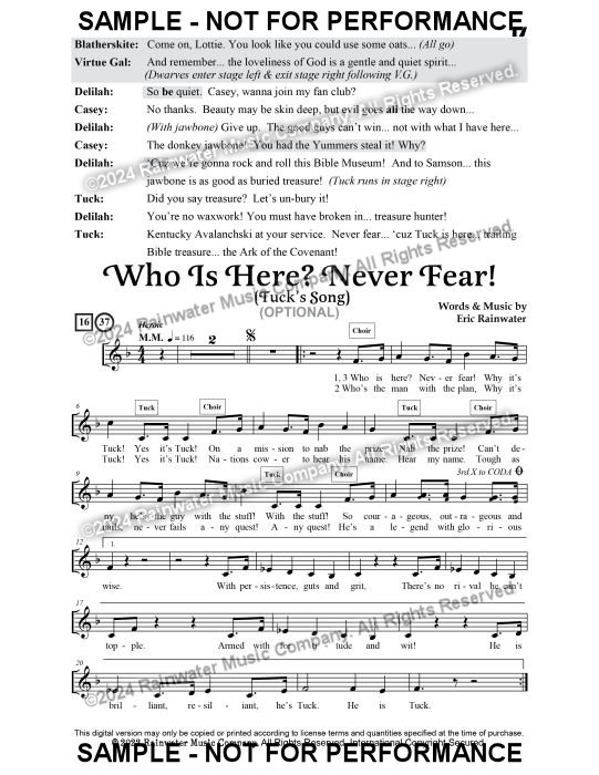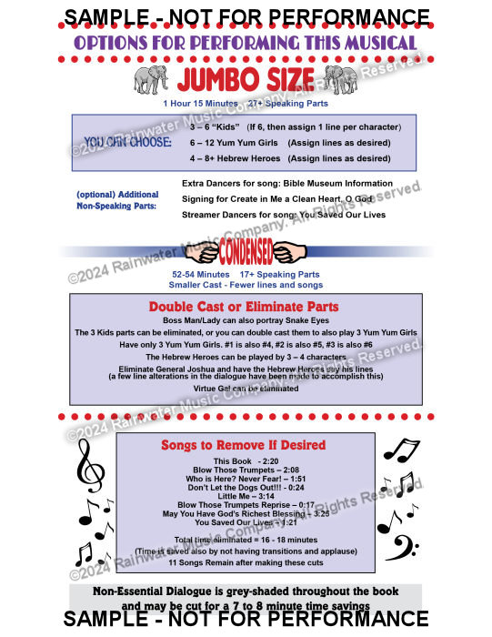 Shaded dialogue and songs marked as optional may be omitted to reduce performance time