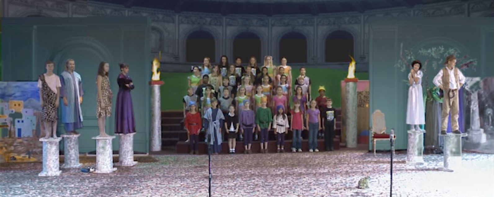 Example stage setup: This sample image shows one possible way to stage the musical. Use it as a visual reference and adapt it to fit your available space, cast size, and production needs.